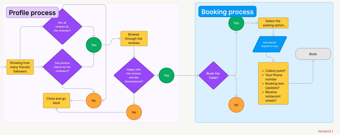 To increase the booking rate, the Open Table determined that the reviewing features needed to be more trustworthy. We discovered that neither users can get to know the other users' details such as characters and preferences nor connect with their friends. That reduces less trustworthiness.