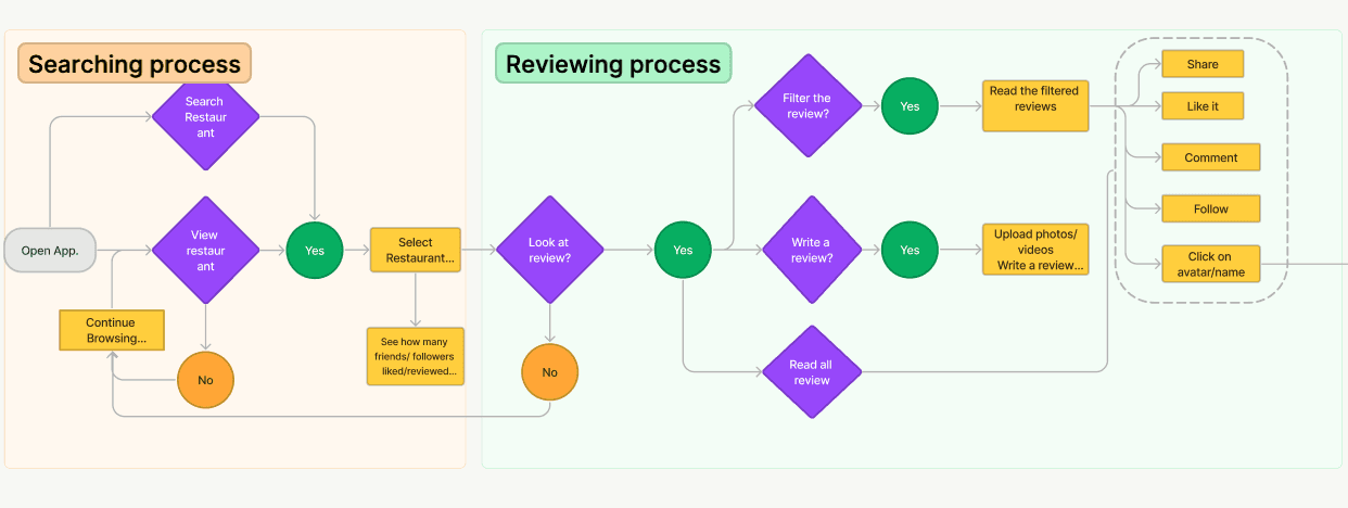 Breaking up into each process allow us to stay clear on the flow and focus on sticking the main solutions we came up with at the later stage.